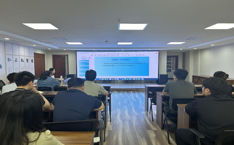 ? ? 為準(zhǔn)確理解《民法典》,學(xué)習(xí)領(lǐng)會新《公司法》修訂的熱點、重點和亮點,進一步提高公司整體運營的合規(guī)管理和風(fēng)險防控能力,結(jié)合集團關(guān)于法治宣傳工作通知要求,5月22日下午,市場投資公司圍繞《民法典》和新《公司法》開展法律知識培訓(xùn)活動,公司本部及各子公司共計30余人參加。