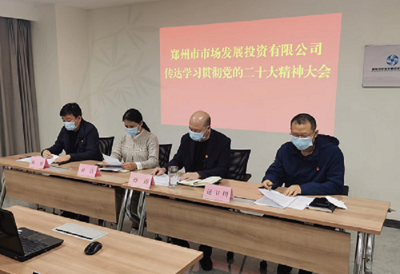 11月9日上午,鄭州市市場發(fā)展投資有限公司召開傳達學(xué)習(xí)黨的二十大精神大會。會議指出,認真學(xué)習(xí)宣傳貫徹黨的二十大精神是當(dāng)前和今后一個時期的首要政治任務(wù),要深刻領(lǐng)悟“兩個確立”的決定性意義,堅決做到“兩個維護”,更加緊密團結(jié)在以習(xí)近平同志為核心的黨中央周圍,以“五個牢牢把握”為重點,深刻領(lǐng)會和理解把握黨的二十大報告的豐富內(nèi)涵和精髓要義,切實把思想和行動統(tǒng)一到黨的二十大精神上來,以更加昂揚的精神狀態(tài),努力創(chuàng)造新的更大業(yè)績,在鄭州國家中心城市現(xiàn)代化建設(shè)中展現(xiàn)國企更大擔(dān)當(dāng)。會議以視頻形式召開,公司領(lǐng)導(dǎo)班子成員,各中心、子公司主要負責(zé)人及相關(guān)人員參加會議。
